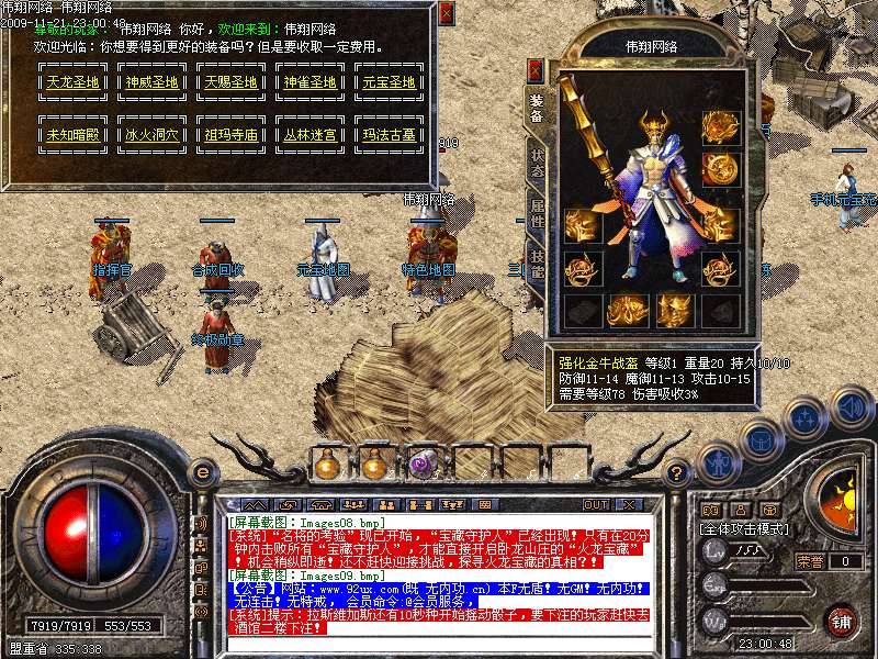 6.神威系列装备:相应地图狂暴。金牛装备出处:金牛殿主,曹操,孙权,刘备,金毛狮王等BOSS怪。终极装备炎龙系列出处:怡红院三大BOSS(此处怪物极其凶猛,建议组队前往)