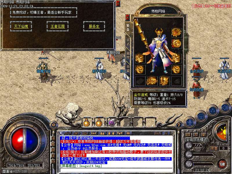 8.终极装备为炎龙三套装,必须靠打,决不出售终极装备跟等级,祝大家游戏愉快