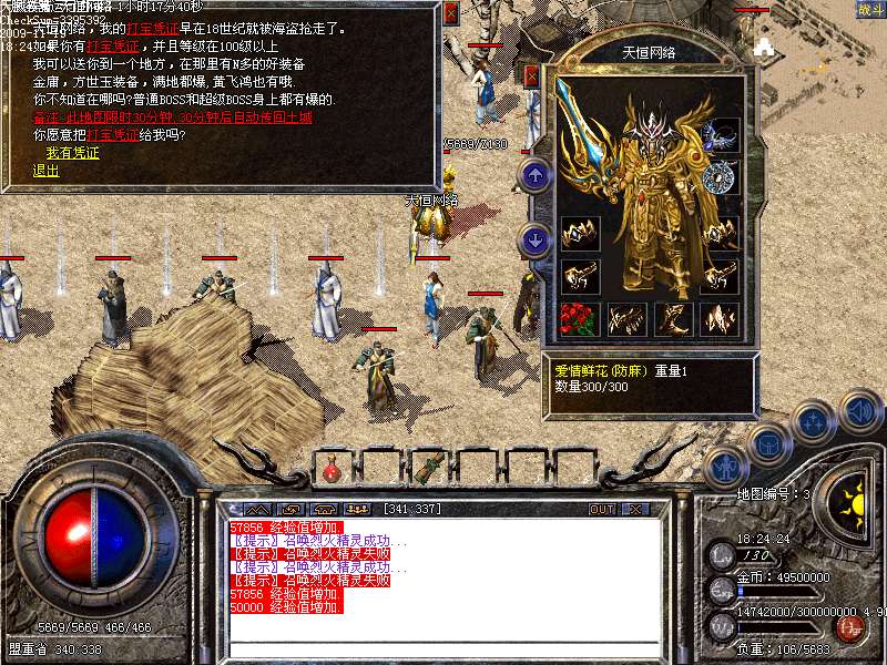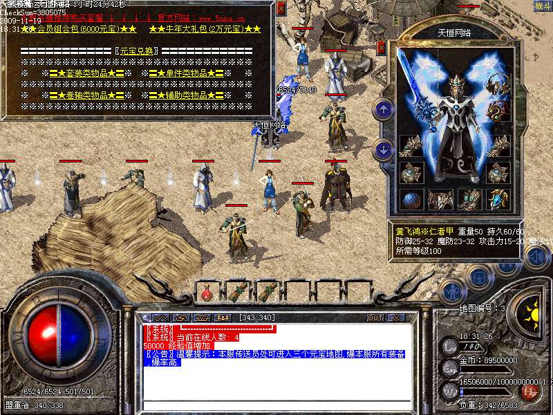 9.在土城 338 341 有个"装备回收员",在那里玩家可以把多余的高级装备兑换成元宝.