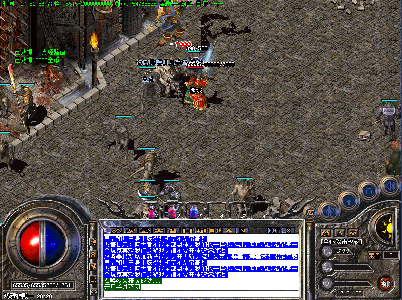 二.【特色活动】封魔谷皇宫内和土药附近每2小时刷一个老魔,系统每2小时还会在沃玛大厅举行一次大型送宝,可以暴出高级装备