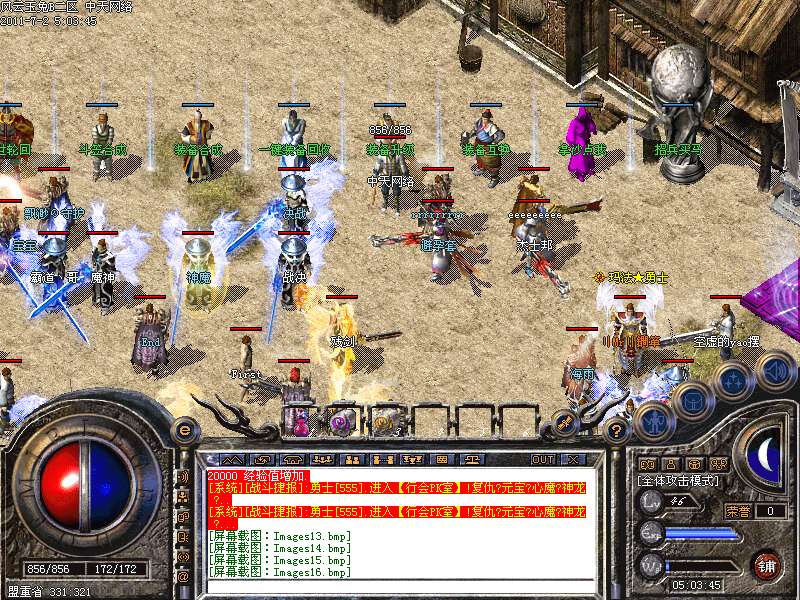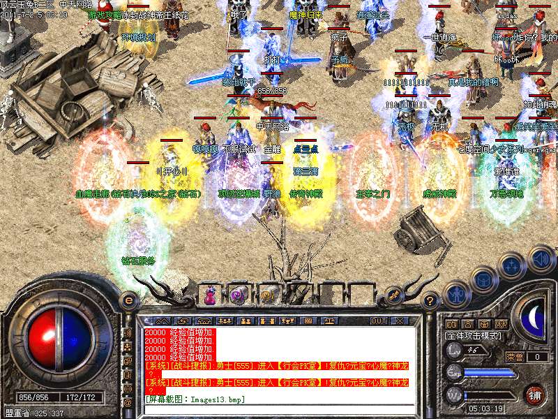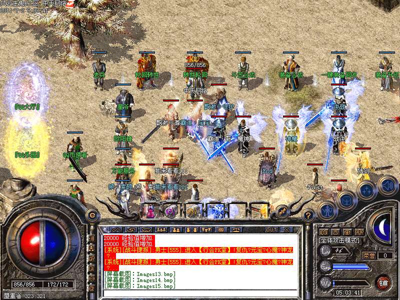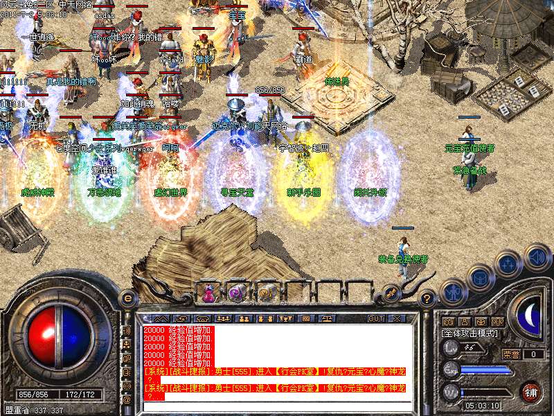 地图介绍 杀手天堂→进入此地图每秒增加一千万经验杀一人奖励2000元宝被杀扣取2000元宝