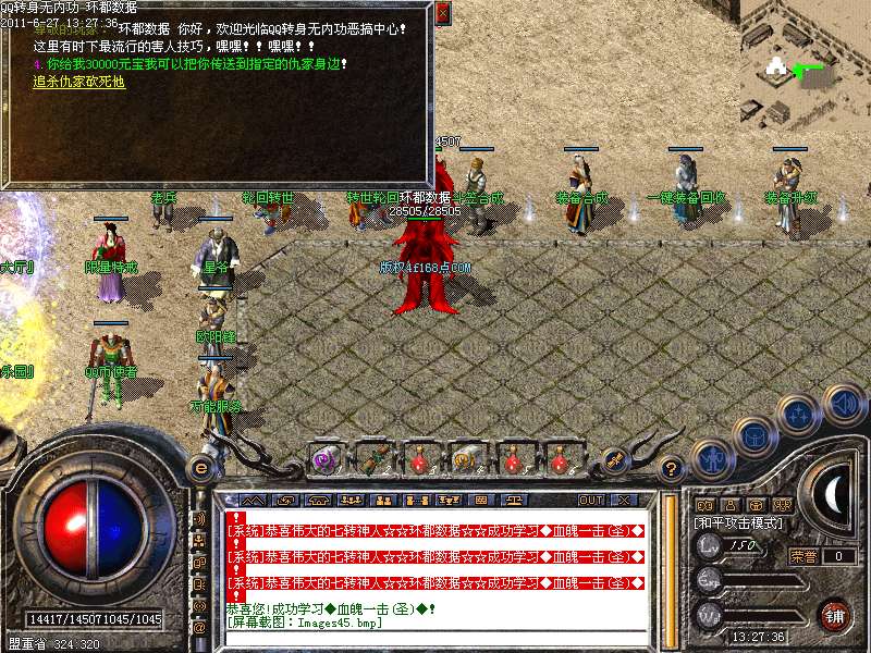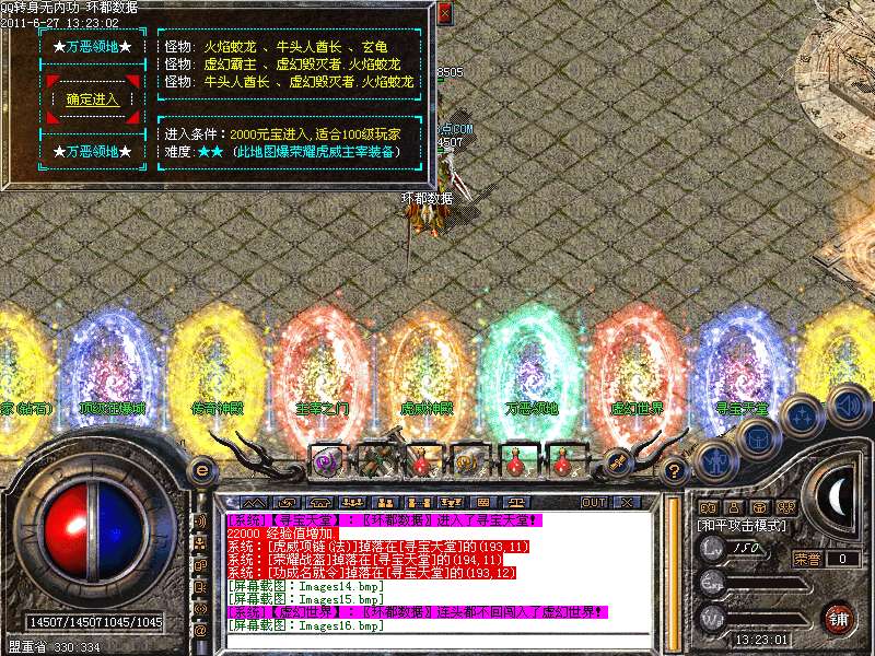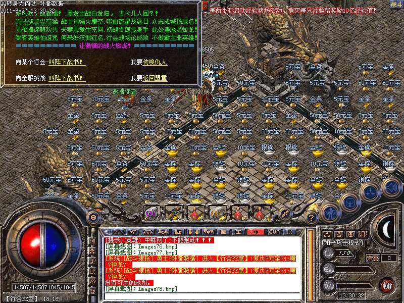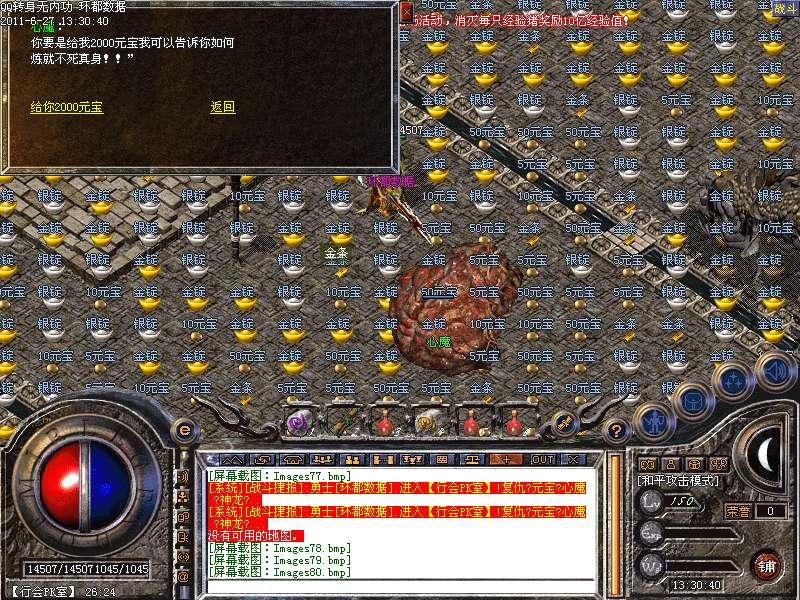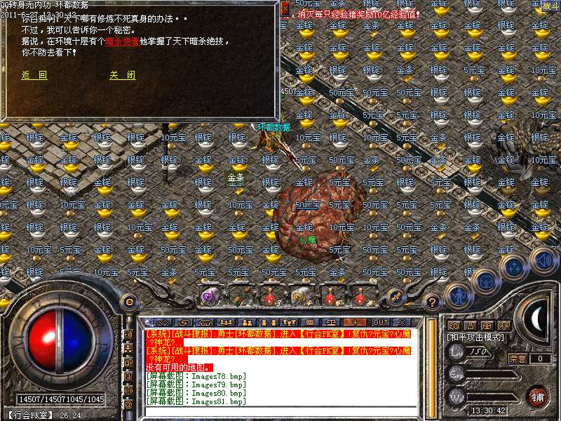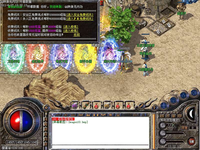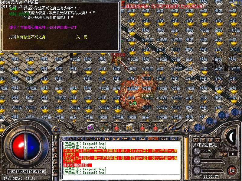 地图介绍 杀手天堂→进入此地图每秒增加一千万经验杀一人奖励2000元宝被杀扣取2000元宝