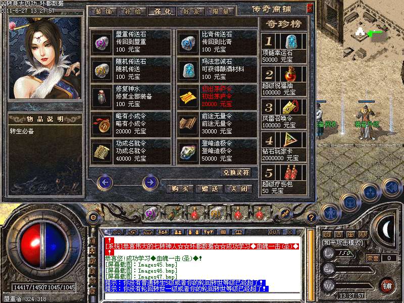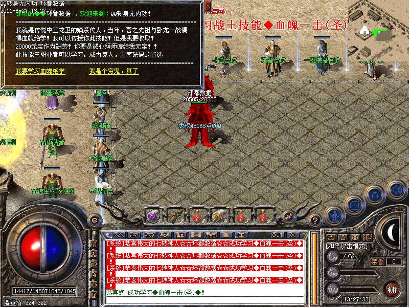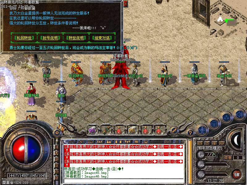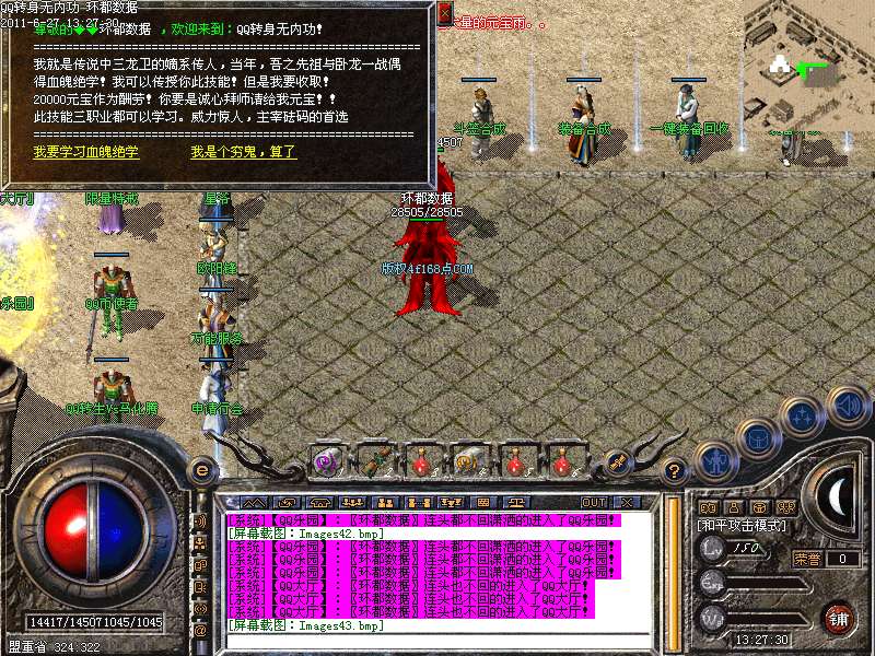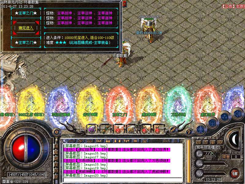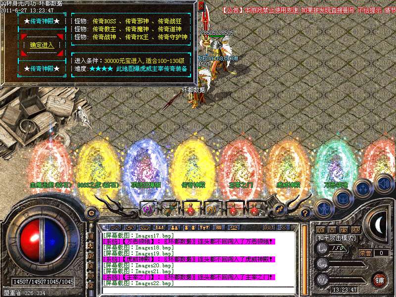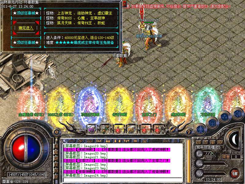 地图介绍 杀手天堂→进入此地图每秒增加一千万经验杀一人奖励2000元宝被杀扣取2000元宝