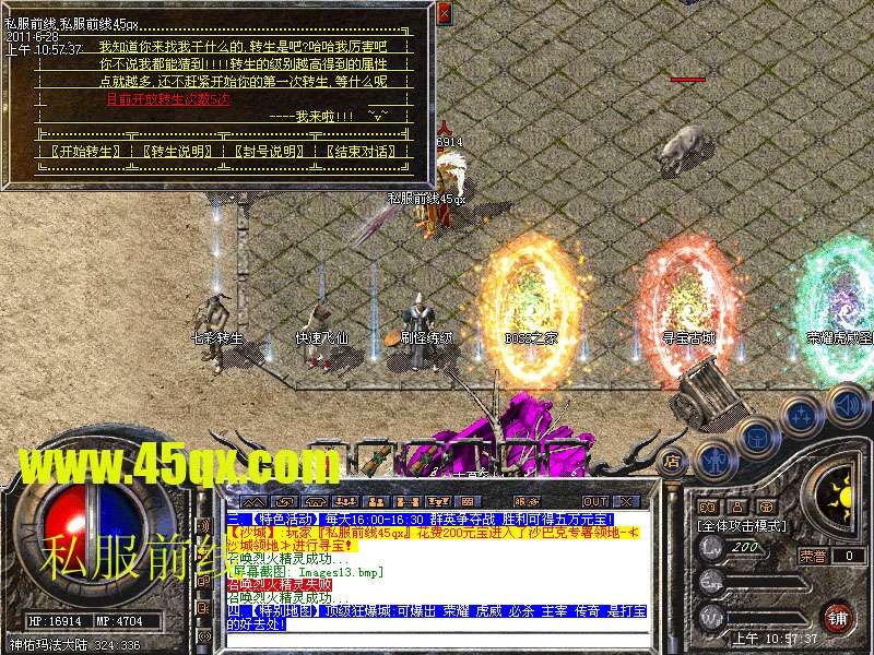 六.【特别地图】本服加入了七彩转身:转身的级别越高得到属性点越多.有些地图可是免费进入的哦!!
