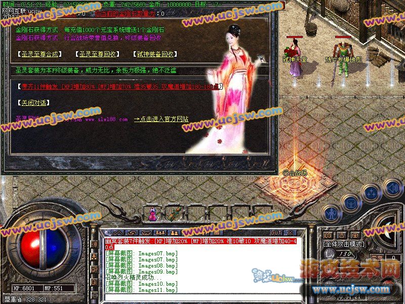 10.行会战场两小时举行一次,可以进去半个小时,每30秒增加100点荣誉值和300万经验,荣誉值可以直接兑换(金刚石)。