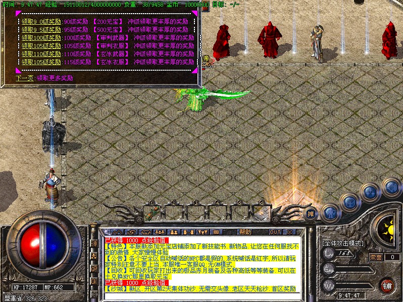 <180,251>【公告】各个安全区自动喊话的NPC都是假的,系统喊话是红字,所以请玩家特别注意不要上当.本服唯一客服QQ:无GM模式.当前服务器测试模式.