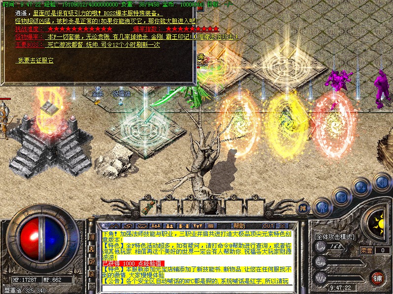 - ☉ V8引擎传奇端游【荒域专属单职业九大陆】Win一键端+配套补丁网站+架设教程