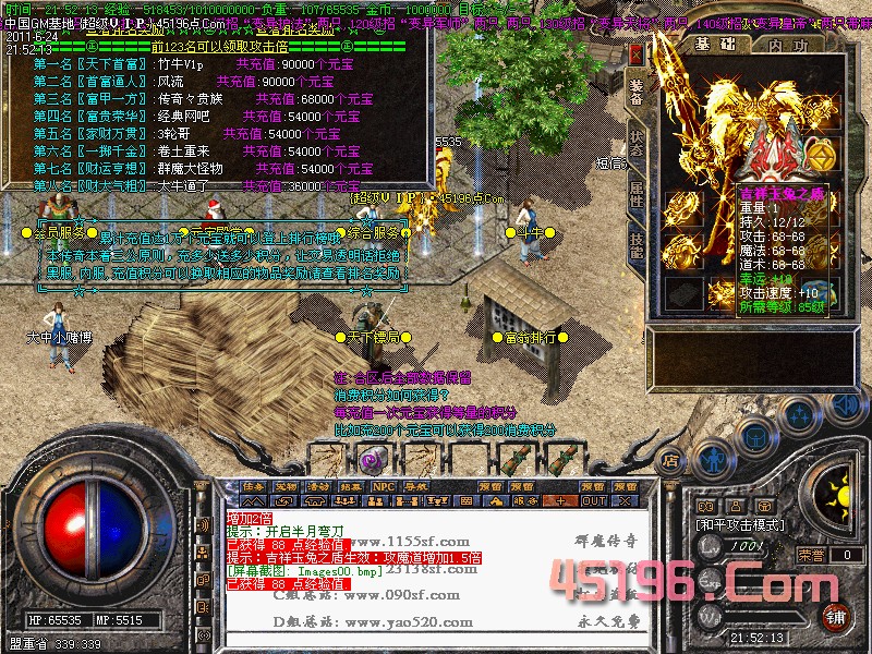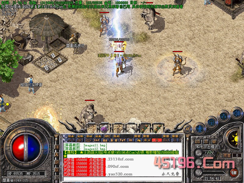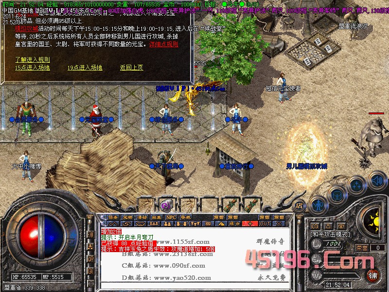 行会争霸每天15点,22点举行一次大型PK活动,获胜者,可以得到10000元宝,1亿经验!进入期间每秒可得15万经验哦