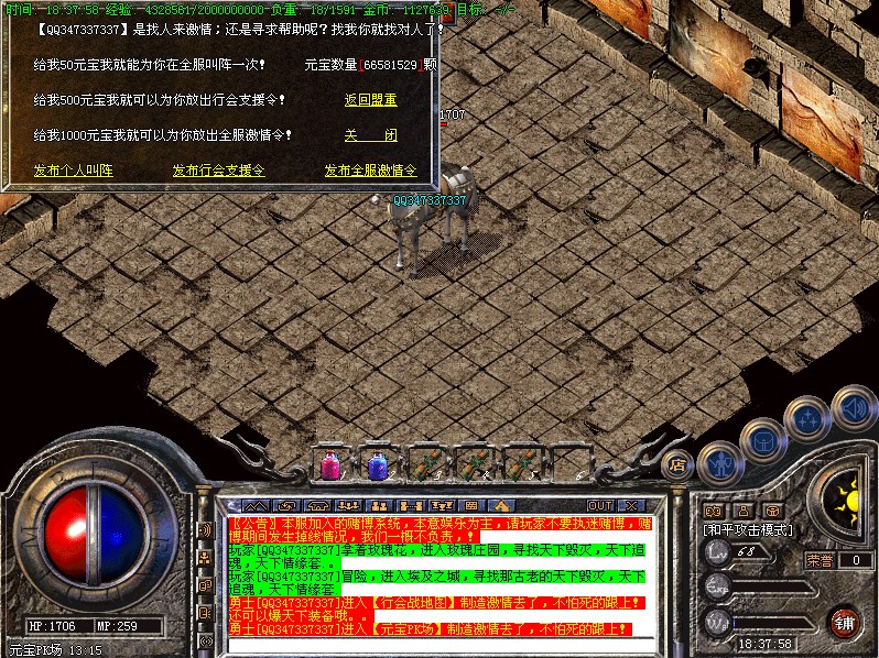 〖特色2〗PK场刷出的三只雷霆战士,护殿红衣,青衣尊者必爆精炼宝石一个。很有可能暴出神泣勋章和天下勋章哦