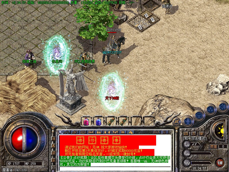 <255,220>〖公告〗欢迎进入本传奇,我们力争保证:公平,公证,公开,认真对待每一个玩家。本游戏不设管理员,不卖装备,不调级,只出售元宝,为广大的玩家创造一个自己当家做主的传奇人的天堂!
