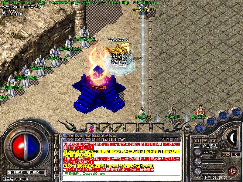 【攻沙时间】: 开区第2天晚8点统一攻沙,奖励元宝200W元宝 !统战区天天攻沙