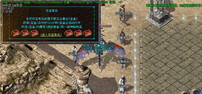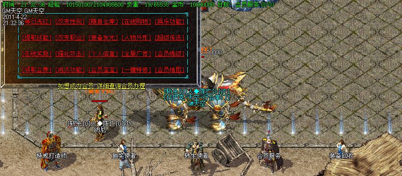 各种活动:“魔兽争霸”从苍月岛进入,进入后靠召唤“弓箭手”来消灭里面的怪物.消灭魔兽越多,获得的奖励就越丰厚.