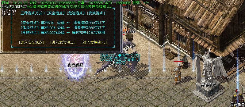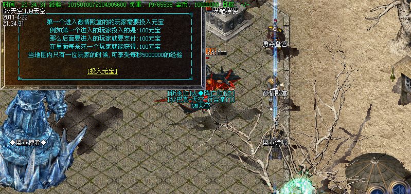 升级战略③:想更快升级的玩家从土城右上角进入“激情殿堂”一个人在里面可享受每秒600W的经验
