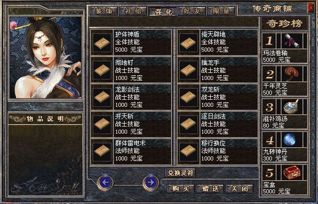 永久属性:从[比奇省]进入“玄冥冰原”找到“镇妖之神”他会帮你用不同的金针打通五重经络提升人物英雄暴击