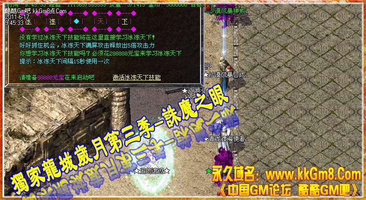 <255,0>亲爱的玩家:欢迎来到2011年最新龙城岁月-诛魔之眼!本F将长期稳定开放!!!
