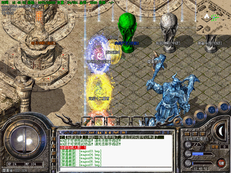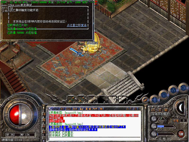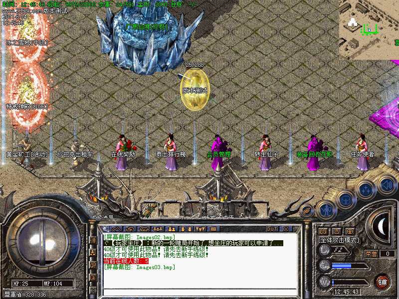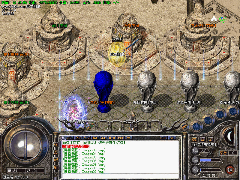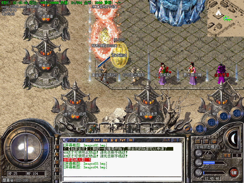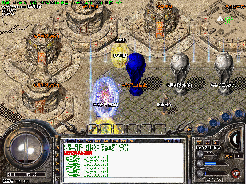 3.隆重推荐两大地图→黄金丛林:战士和法师可引怪群攻,爆大量怒血等装备回收超级丰富元宝,同时每只怪蕴藏大量经验,故此地图也可作为练级圣地;