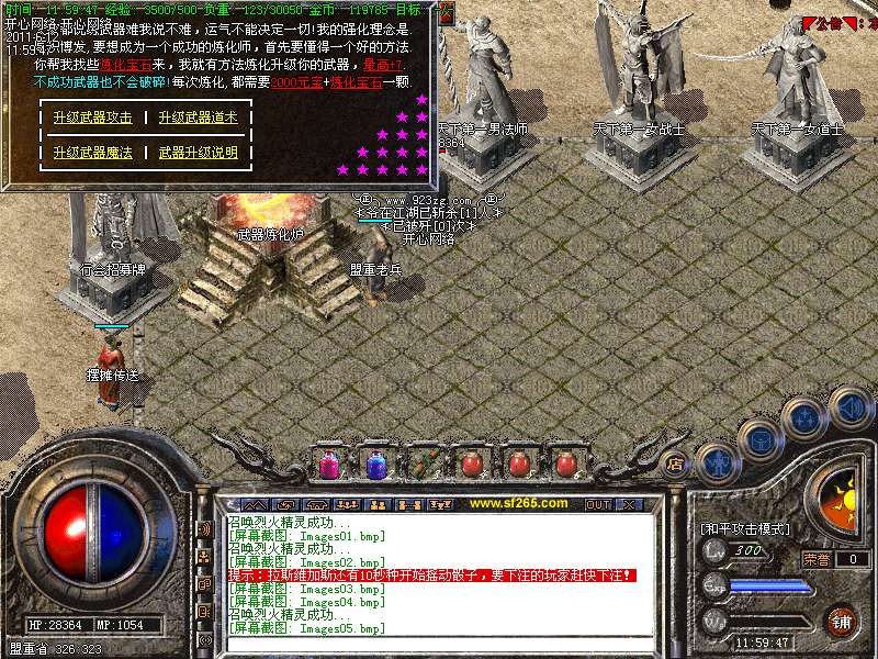 游戏特色【官位捐款..黄金武器..拉斯维加斯..冲级大奖..剧情││地图..在线回收】每日精彩活动:燕屋寻宝.在线活动.行会争霸.。~││触发黄金武器,必须使用(超级祝福油)或者武器炼化炉!