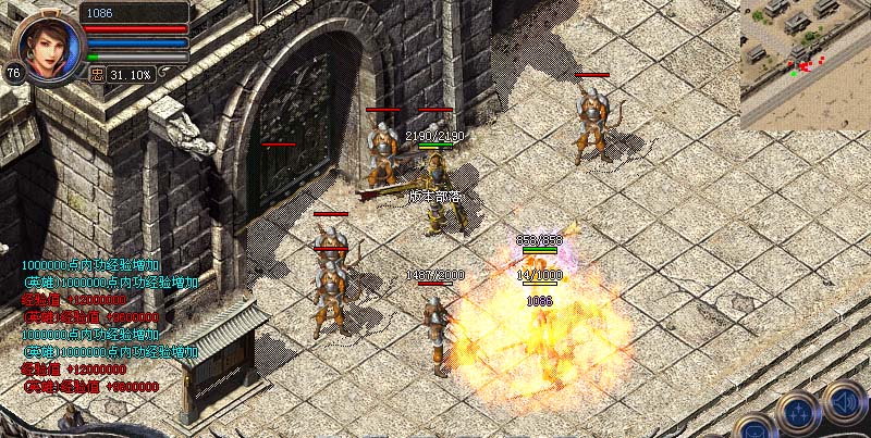 免费闭关修炼区内有一牌坊,站在上面每秒获得5000W经验,玩家必争