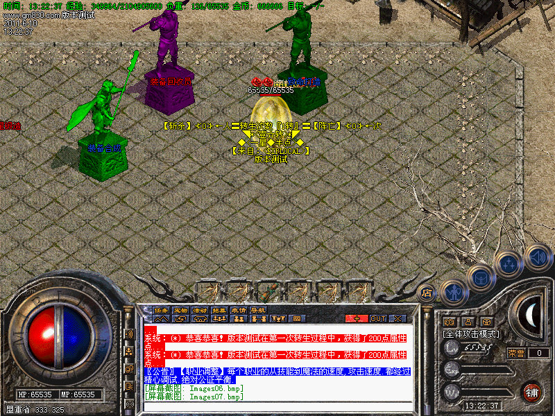 4.人物转生需要到盟重土城左边的转生雕像那里完成转生.转生后可获得属性奖励.还有酷炫的转生封号.