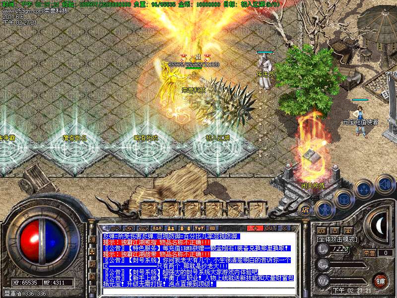 【新手上线】平衡了三职业!人物上线就送新技能和大量财富包括元宝!升级无需打怪!泡点直接到顶级!.