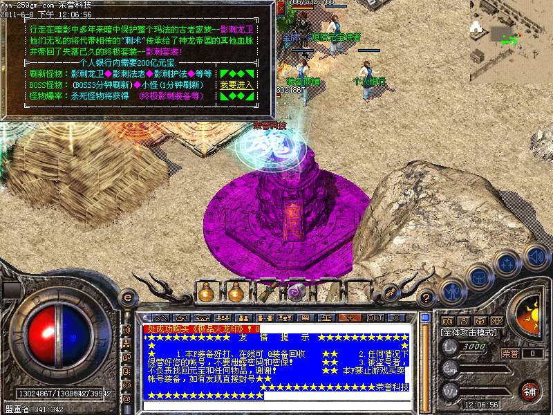 请保管好自己的帐号,被盗一律不负责找装备、元宝等物品!