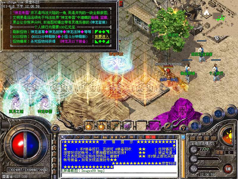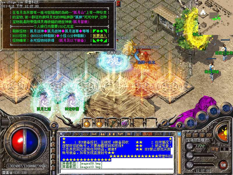 本服为无GM管理模式,冲值元宝请到网站冲值!!!