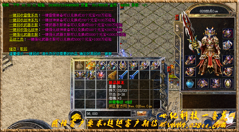 ③.新手回土城后可以去魔龙等地图,装备一键回收元宝,方便!