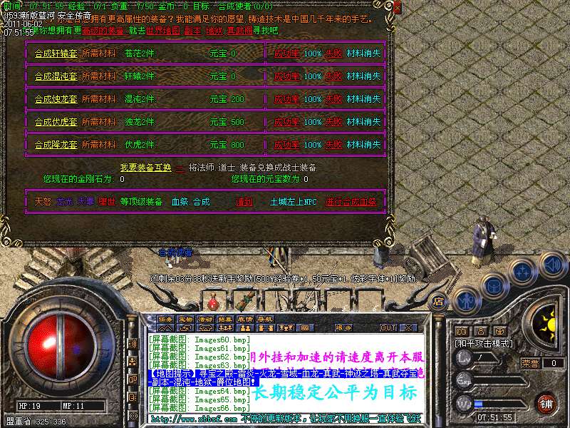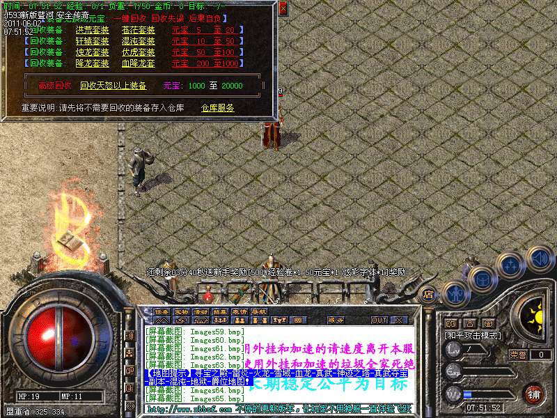 【温馨提示】本私服 G M 管理 自称Gm均为骗子唯一充元宝方式在登陆器.网站.进行充值.比例 短信1:1000 点卡1:1700 网银 1:2000