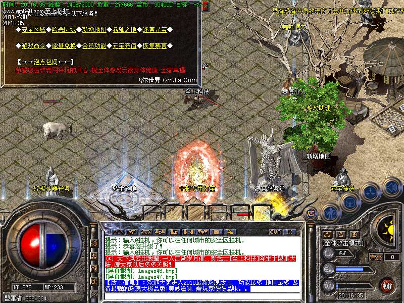 - ☉ GOM引擎传奇端游【超级骷髅王之五行世界】Win一键端+配套补丁网站+架设教程