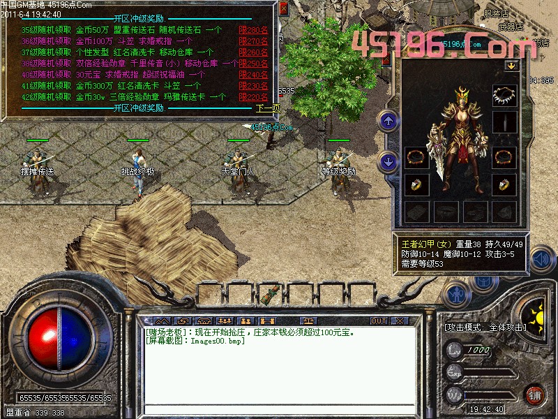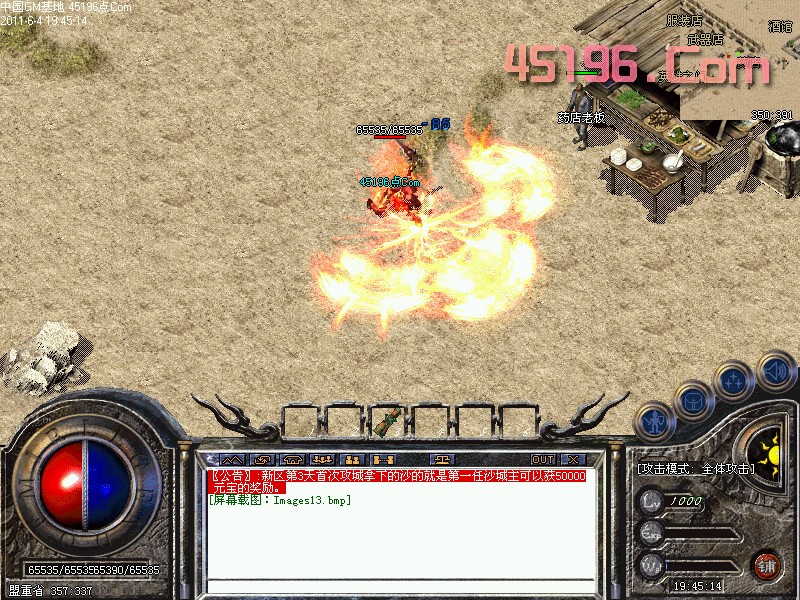 〖公告〗:开区第3天首次攻城拿下的沙的就是第一任沙城主可以获50000元宝的奖励。