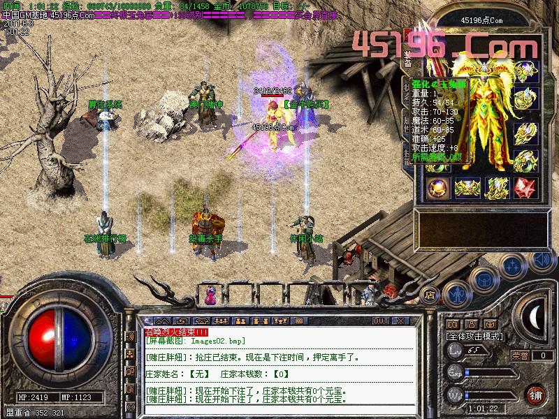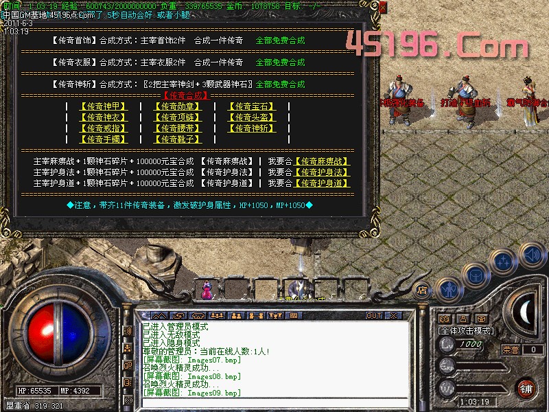本服暴率较高,大家很快有玉兔级装备,稀世装备可以在土城合成非常简单,版本是在仿盛大1.89基础上,更新到了最新装备和装备技能