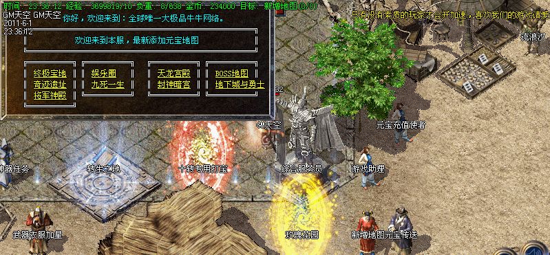 3.【特色活动】:土药店每5分钟刷新一棵元宝树,每次必暴10元宝以上,还有几率爆出高级装备和终身会员卡!