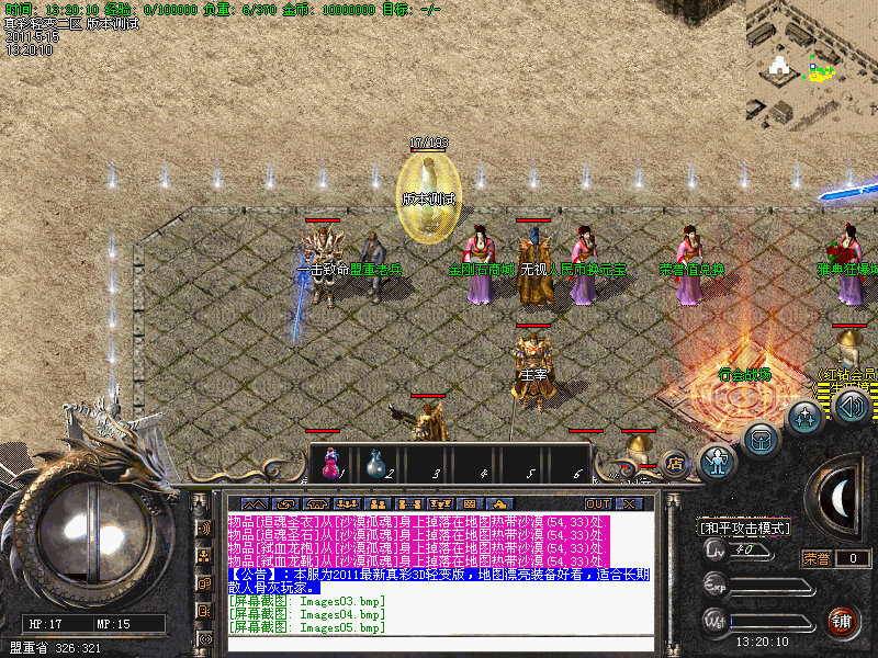 2 本服开区三天后集体抢沙,第一届沙城主奖励元宝:20万,希望大家踊跃参加。