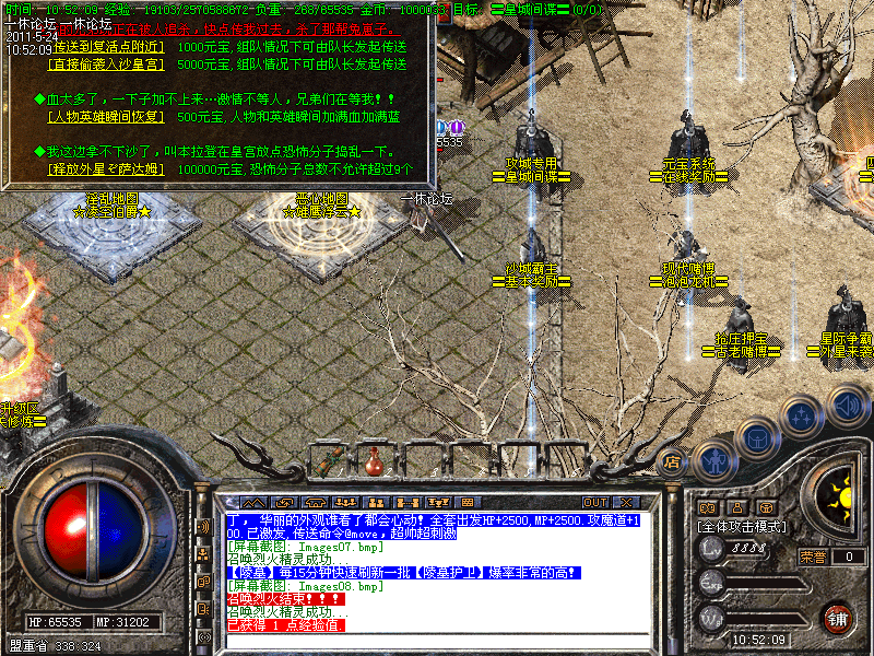 【沙城基本奖励】本服新区开区第2天则集体攻城,行会老大无需递交头像,新区沙城主奖励500W元宝,老区沙城主奖励200W元宝。