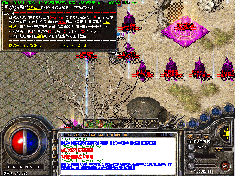 【职业调整】调整了3个职业的平衡性,着重增加道士宝宝和道士毒的威力,根据级别高低可以直接招出更高级宝宝!85级招黄金圣斗士,95级招鬼武者,120级招终极万劫龙神,130级招两只终极万劫龙神!!(威力淫荡无比)
