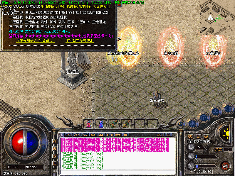 7.本服装备回收经验高。元宝高。而且装备暴率超高!方便玩家升级!!!!推荐打宝地图:火龙,地下宫殿,魔龙。暴火龙级别装备。皇宫,究级狂暴,可暴出究级、君王!