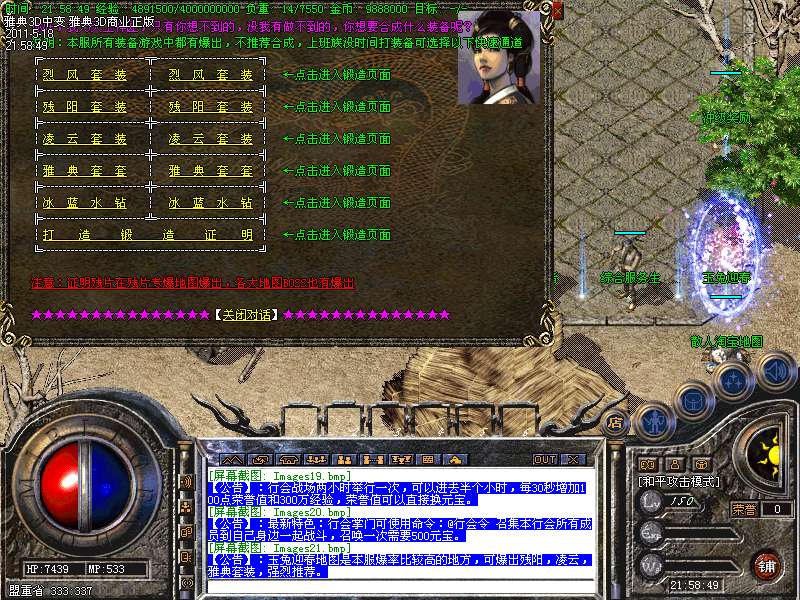 【特色9】;散人淘宝地图是个很不错的地方,怪物好打,偶尔可以爆出:残阳,凌云,甚至是雅典装备。