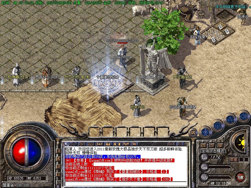 <255,241>【等级提升】:建议新手先去脑残使者处做完任务,获得三倍经验宝石,加上经验勋章去万年废墟或练级广场升级。