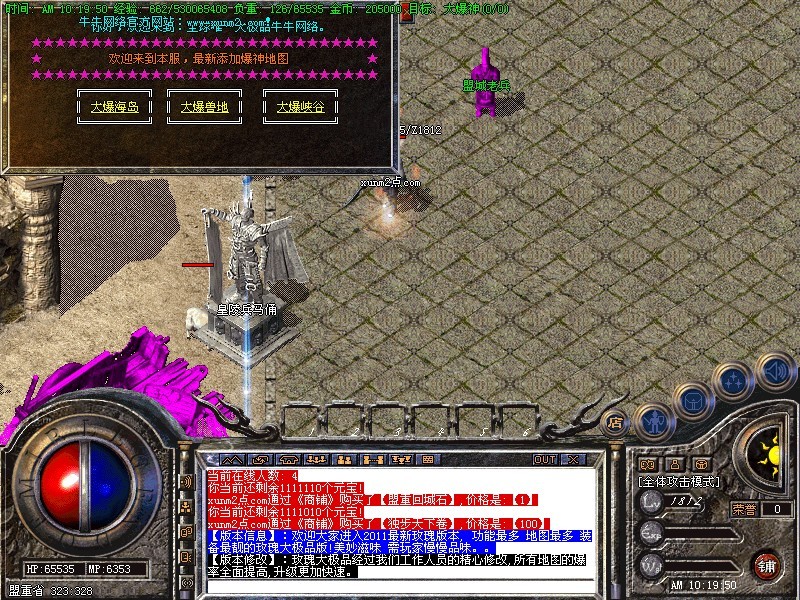 <255,70>【特色活动】:土药店每5分钟刷新一棵元宝树,每次必暴10元宝以上,还有几率爆出高级装备和终身会员卡!