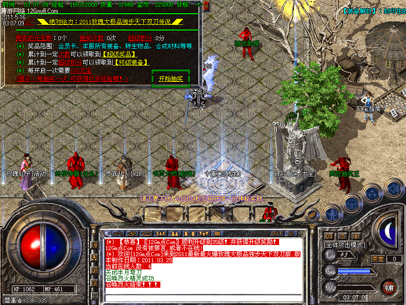 【特色活动】:土药店每5分钟刷新一棵元宝树,每次必暴10元宝以上,还有几率爆出高级装备和终身会员卡!