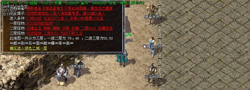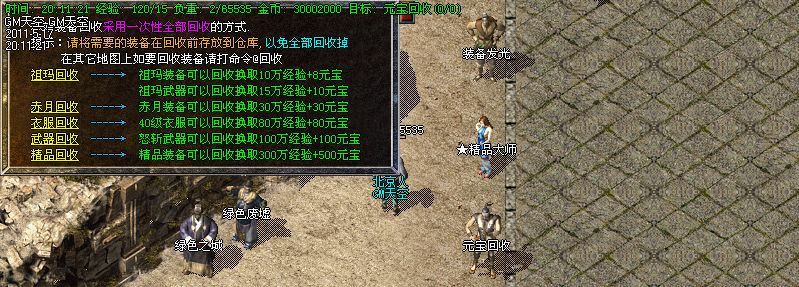装备回收:祖玛以上级别的装备都可以原地回收经验和元宝.让没用的装备也有它的价值.深受玩家之喜好