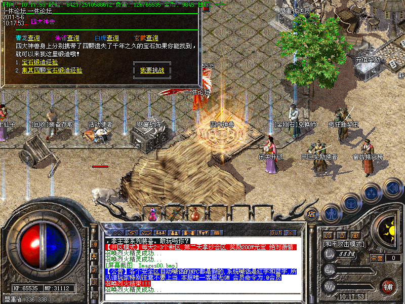 v10、【拿沙奖励】新区开放2天拿沙,新区奖励200W元宝,老区100W元宝,土NPC领取