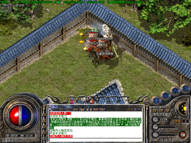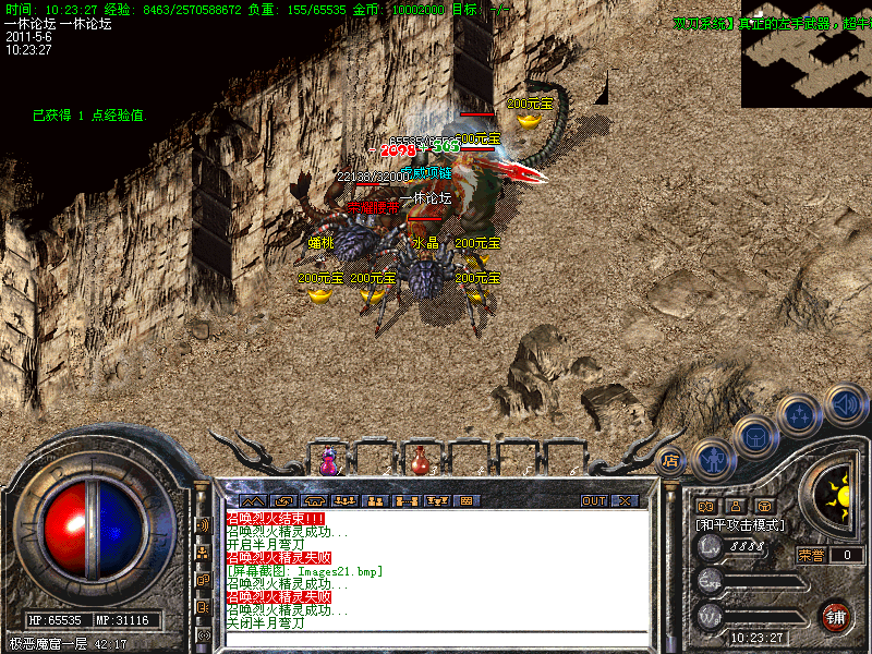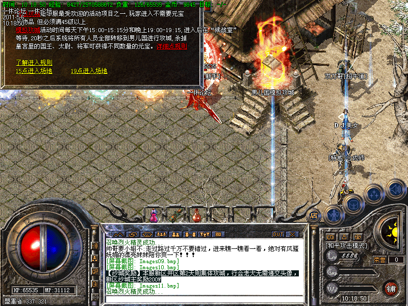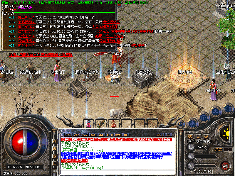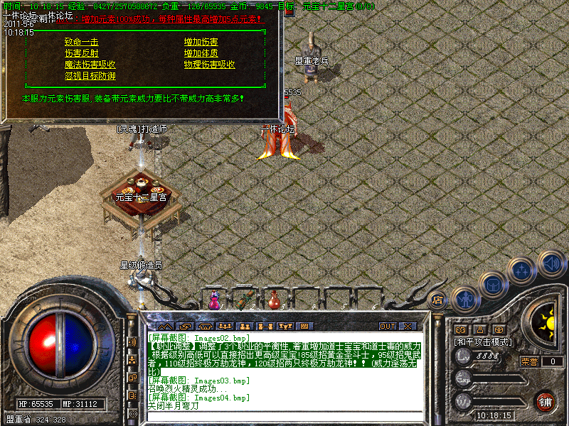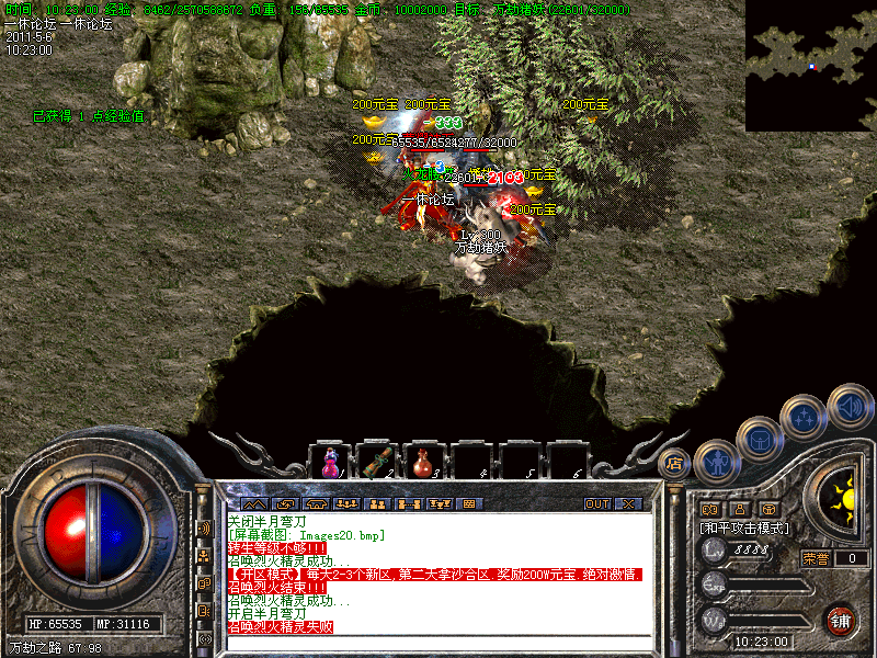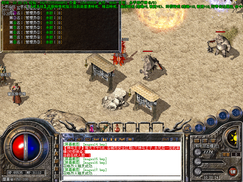 还有一定几率暴出<火龙装备>。当你升级到35级时,系统会自动传送你到土城。
