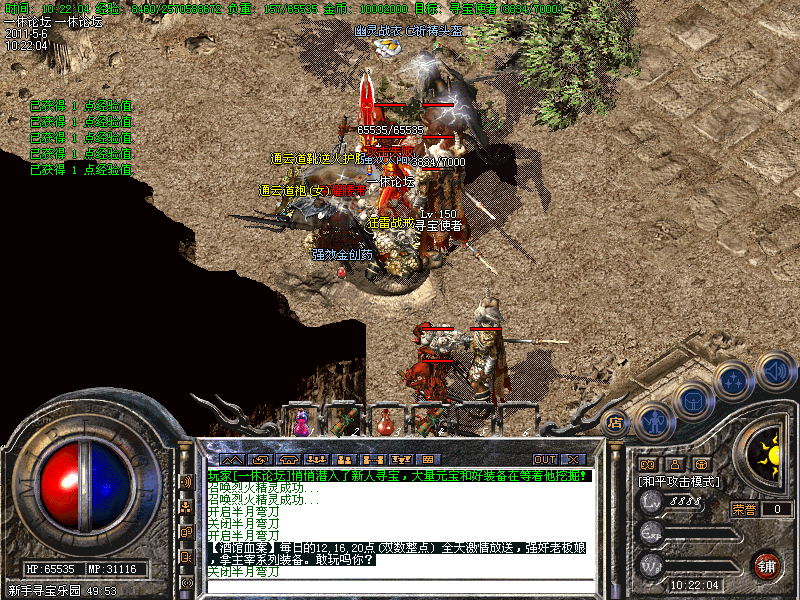 此时你可以去<新手寻宝>,五大基本装备地图,不怕你打不到好装备。
