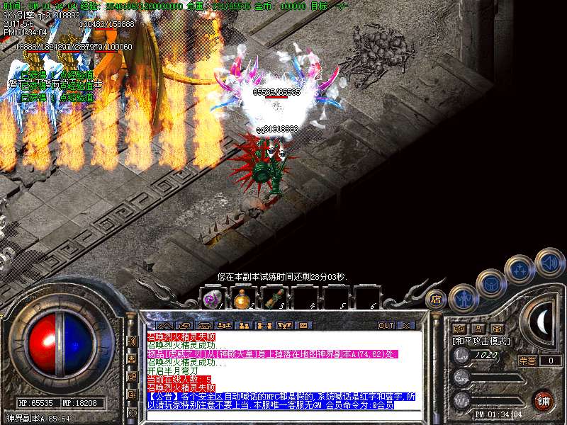 【魔界】进入此副本,刷很多BOSS,可暴本服任何装备。通关后可获得经验奖励或者直接进入混沌之地。