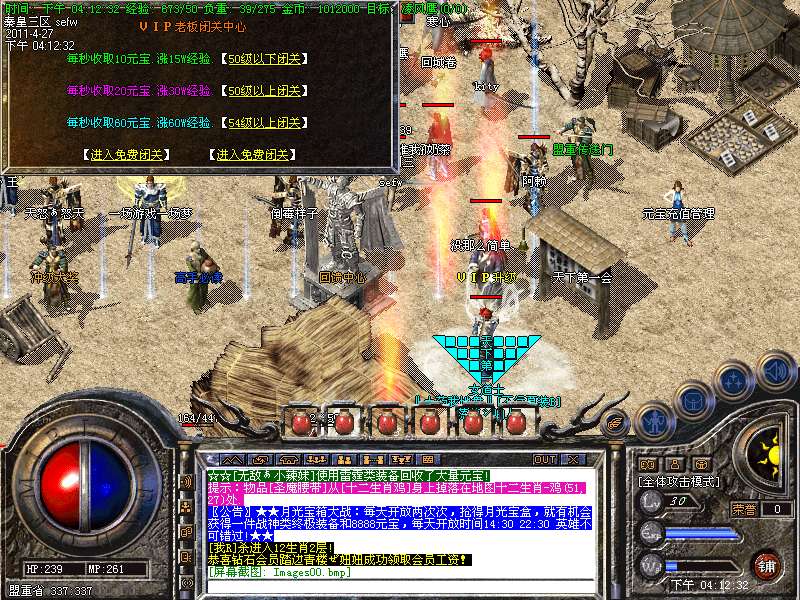 服务器每两个小时土药店刷元宝怪一个必暴4000元宝.高手升级地图8倍经验