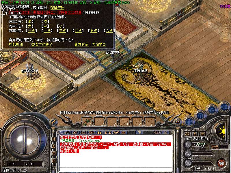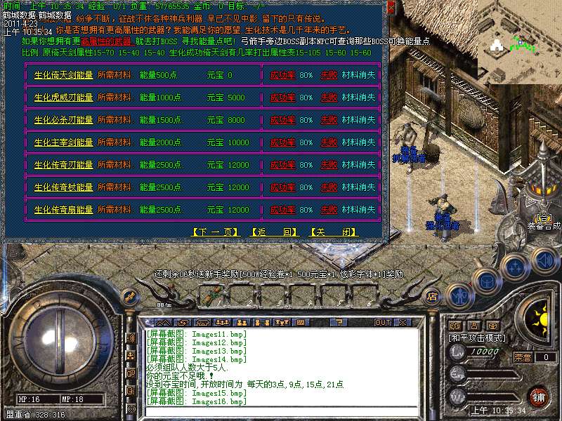 申明:本游戏最高人物等级限制为220级、人物等级提升可获得奖励:请查看土城(升级触发奖励NPC)341*342