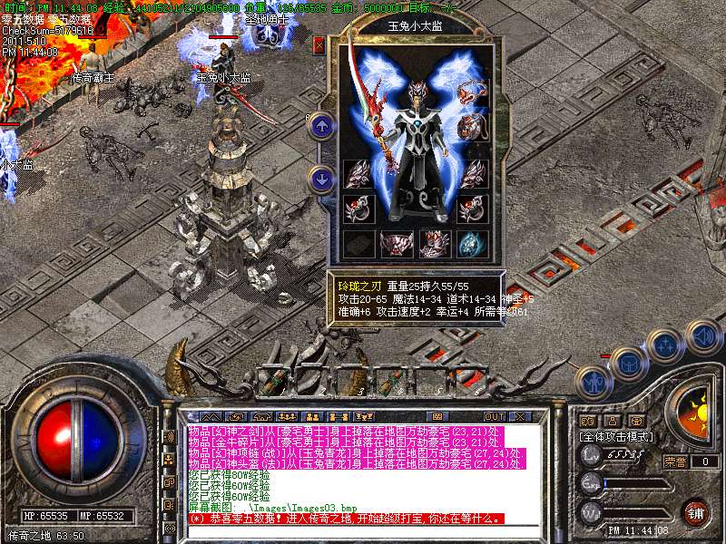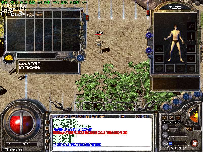 游戏介绍①: 新手地图练级2分钟到35级,30级以后系统自动送一套赤月装备回到土城.