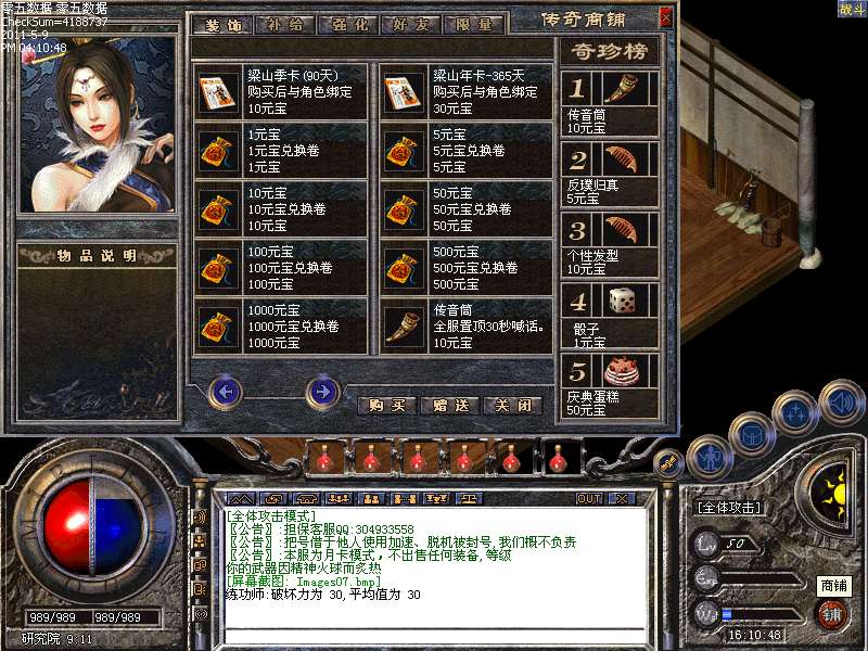 [月卡充值]:10元/3个月 30元/年(游戏卡10元 网银多送%20 不支持短信固定电话)
