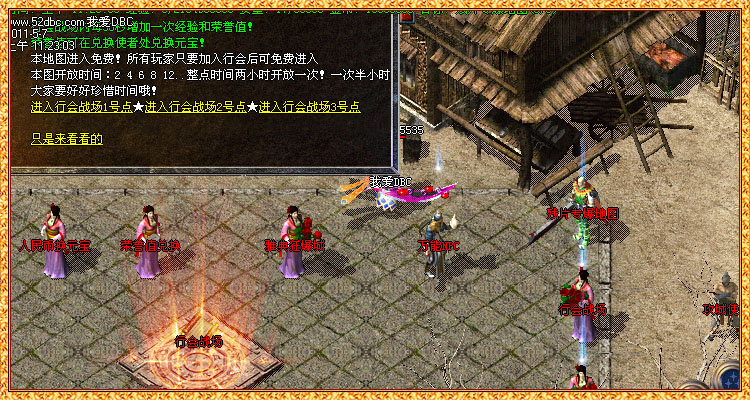 【公告】:行会战场两小时举行一次,可以进去半个小时,每30秒增加100点荣誉值和300万经验,荣誉值可以直接换元宝。